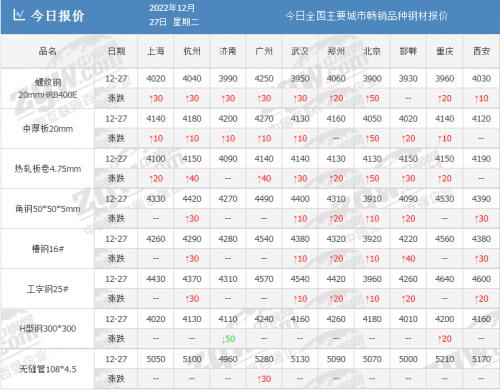 一、钢市影响因素 1、前11月全国分省市粗钢产量出炉 国家统计局数据显示,2022年11月全国粗钢产量7454.4万吨,同比增长7.3%;1-11月全国粗钢产量93511.3万吨,同比下降1.4%。2022年前11月2个省市粗钢产量同比降幅超10%。其中吉林降12.07%和青海降31.64%。 分析师观点:焦炭第四轮提涨全面落地,新加坡铁矿石掉期指数价格再度突破新高,站上114.3美元,在原料强势拉涨下,钢企利润空间收窄。加上临近年底,天气寒冷,国内大部分项目进度受限,终端采购量下降,钢厂生产积极性大幅走弱,停产检修增多,多个省市总体粗钢产量下降,市场供应量走弱,利好钢价反弹。 2、银保监会:促进金融与房地产正常循环 银保监会召开党委(扩大)会议,要求,坚持“一行一策”“一司一策”,加快推进中小银行保险机构改革化险。前瞻应对信贷资产质量劣变风险,鼓励银行机构加大不良资产处置力度。促进金融与房地产正常循环,做好“保交楼、保民生、保稳定”工作,满足房地产市场合理融资需求,改善优质房企资产负债表。 分析师观点:为了提振经济发展,多项宏观政策出台释放积极利好信号。银保监会依然保持积极稳健的金融货币政策,促进金融与房地产正常循环,做好保交楼,保民生、保稳定工作,加快推进经济恢复,推动楼市平稳过渡,加强对企业的金融纾困帮扶,扩大居民消费意愿,增强终端项目对钢材需求量,利好钢价走势。 3、1-11月规模以上工业企业利润同比下降3.6% 1—11月份,全国规模以上工业企业实现利润总额77179.6亿元,同比下降3.6%,1—11月份,规模以上工业企业中,国有控股企业实现利润总额24049.7亿元,同比增长0.5%;股份制企业实现利润总额56412.0亿元,下降2.8%;外商及港澳台商投资企业实现利润总额18378.5亿元,下降7.8%;私营企业实现利润总额22636.9亿元,下降7.9%。 分析师观点:从最新统计数据看出,除了国企外,其他工业企业前11月利润同比下降,一方面在于受美联储加息影响,美元贬值,大宗商品价格拉涨,原材料及成本端维持高位,然而受疫情影响,整体居民消费水平下降,企业生产经营困难重重,为了恢复经济发展,银保监会、央行等出台积极金融政策,帮助企业渡过难关,届时更多利好政策或将落地,扩大钢材需求量,利好钢价走势。 二、市场价格 1、期钢持红上扬 27日新加坡铁矿石掉期指数价格再度突破新高,站上114.3美元。国内螺纹钢主力涨81,收报4066,涨幅2.03%;热卷主力涨69,收报4092,涨幅1.72%;焦煤主力涨62,收报1927.5,涨幅3.32%;焦炭主力涨77.5,收报2756.5,涨幅2.89%;铁矿石涨15,收报836,涨幅1.83%。 2、钢厂稳中上调 据中钢网资讯研究院数据显示,今日共25家钢厂调价,其中: 上调13家,占比52%,调价幅度10-60元/吨; 下调6家,占比24%,调价幅度10-40元/吨; 持平6家,占比24%。 3、现货方面 今日钢材现货价格稳中拉涨,最大涨幅50元/吨。 中钢网APP数据显示: 建材24个市场中,18个市场涨10-50,螺纹钢20mmHRB400E平均价格4057元/吨,较上个交易日价格涨20元/吨; 热卷24个市场中,20个市场跌10-40,4.75热轧板卷平均价格4128元/吨,较上个交易日价格涨28元/吨; 中厚板23个市场中,14个市场涨10-50,14-20mm普中板平均价格4187元/吨,较上周价格涨10元/吨。 钢价预测 银保监会积极支持建设现代化产业体系,引导金融资源更多向中高端制造业聚集,持续增加中长期贷款投放和保险资金投资,加强对现代化基础设施,扩大对企业扶持,增强企业核心竞争力,提高居民收入,增加消费预期,提振市场信心。另一方,铁矿石及焦炭依然坚挺,成本端支撑强势,前11个月国内钢企整体产量下降,部分钢厂开启自储,市场供应量下降,商家冬储意愿或被提起,预计短期内钢价或将稳中偏强运行。