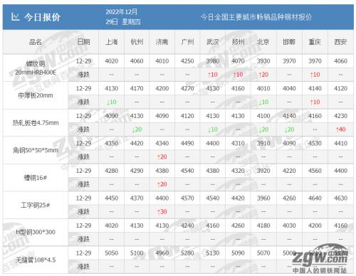 钢市影响因素 1、年末资金面逆势宽松 随着央行持续在公开市场加码投放流动性,年末银行间市场资金面呈现逆势宽松态势。本周以来,市场隔夜利率持续处于偏低水平。自12月21日跌破1%后,银行间市场存款类机构隔夜质押式回购利率(DR001)加权平均利率持续走低。截至12月28日收盘,DR001加权平均利率下行8.59个基点报0.4759%,刷新历史新低。 分析师观点:临近年终,疫情管控全面放开,提振经济发展占据重要位置,宏观政策持续发力,市场预期得到提振,央行及银保监会金融支持加大,利率持续回落,年末资金面超预期宽松应对年末流动性趋紧,央行加大公开市场操作力度。同时,19日重启14天期逆回购以来,央行的逆回购投放规模一直处于高位。上周,央行在公开市场累计净投放7040亿元。29日央行进行2050亿元7天期逆回购操作,中标利率为2.00%,有40亿元7天期逆回购到期,当日实现净投放2010亿元。 2、国内多地出实招稳增长 外贸大省抢订单行动初见成效,多地出台政策助企业留工招工,消费市场回暖、投资加快落地……时至年末,各地落实中央经济工作会议决策部署,更好统筹疫情防控和经济社会发展,采取一系列扎实举措推进稳增长,为明年经济运行整体好转奠定基础。 分析师观点:随着国家宏观政策利好经济发展主基调不变,各地市开启抢订单,多种方式扩大订单需求,消费投资逐渐回暖,市场信心有所提振。同时,在资金充裕情况下,政府积极响应中央经济工作会议精神,政企联动,让更多企业获得订单,促进经济活力,恢复经济发展,利好钢材需求量,助力钢价走势。 3、银保监会:支持金融市场平稳运行 12月29日,银保监会创新部党支部发文表示,围绕加快建设现代化经济体系,积极推动多层次金融市场建设,健全金融市场体系,不断调整优化融资结构。完善金融市场法治建设,充分发挥市场在金融资源配置中的决定性作用,更好发挥政府作用,提升金融市场韧性,支持金融市场平稳运行。 分析师观点:随着新年临近,为了应对年度资金紧张问题,央行及银保监会积极推动多层次金融市场建设,支撑金融市场平稳运行,同时在政府利好政策扶持下,市场预期增强,下游投资信心有所提振,在资金的充分利用,给各地经济发展注入新鲜血液,扩大国内钢材需求量,利好钢价走势。 二、市场价格 1、期钢震荡调整 29日螺纹钢主力涨3,收报4048,涨幅0.07%;热卷主力涨16,收报4090,涨幅0.39%;焦煤主力跌20.5,收报1871,跌幅1.08%;焦炭主力跌18.5,收报2681,跌幅0.69%;铁矿石涨13,收报845,涨幅1.56%。 2、钢厂稳中个涨 据中钢网资讯研究院数据显示,今日共22家钢厂调价,其中: 上调7家,占比31.8%,调价幅度10-30元/吨; 持平15家,占比68.2%。 3、现货方面 今日钢材现货价格稳中个别涨跌,最大涨幅40元/吨。 中钢网APP数据显示: 建材24个市场中,8个市场涨10-20,螺纹钢20mmHRB400E平均价格4073元/吨,较上个交易日价格涨5元/吨; 热卷24个市场中,8个市场跌10-30,1市场涨30,4.75热轧板卷平均价格4123元/吨,较上个交易日价格跌5元/吨; 中厚板23个市场中,3个市场涨10,34个市场跌10,14-20mm普中板平均价格4184元/吨,较上个交易日价格跌1元/吨。 从2022年12月1日-29日,4.75热轧板卷平均价格从3940至4123元/吨,累涨183元/吨。 钢价预测 进入12月末,北方天寒地冻,南方冷空气袭击,室外施工项目进度减慢,需求依然较弱,成交放量有限,目前1月份钢企的产量、下游需求量、政策都是确定的,钢价走势非常明朗确定,部分商家心思已经不在行情上了。现在的价格主要是受期货因素的扰动,在宏观利好预期的牵动下,部分商家补库增多,且钢厂在高成本支撑强,停产检修增多,市场供应量下降,在强预期的拉动下,预计短期内钢价或将稳中个涨运行。