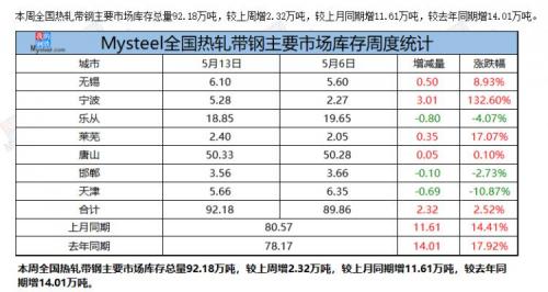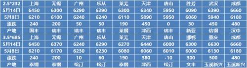 无锡带钢:本周无锡市场带钢价格涨后急速回落。截止发稿,无锡带钢价格中天资源报价6200-6300元/吨,较上周市场价格涨50-100元/吨,截止5月14日,无锡带钢库存周比增加0.5万吨至6.1万吨。目前市场降价之后厂商观望为主,成交清淡。市场陆续北方资源到货,前期高价位资源压制市场资金偏紧,整体操作显谨慎,目前南北价差尚可,北方资源可南下,预计下周带钢价格震荡调整运行