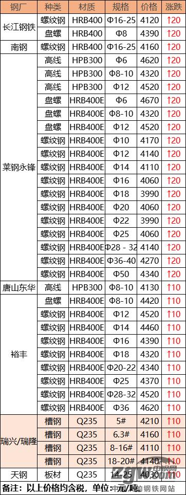 钢厂调价汇总