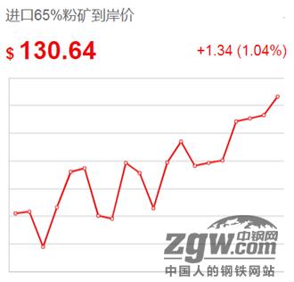 1月5日,根据今日铁矿的数据显示,进口65%粉矿到岸价格上涨1.34收于130.64美元/吨,涨幅达1.04%;进口62%粉矿到岸价格上涨1.29收于117.4美元/吨,涨幅达1.11%。