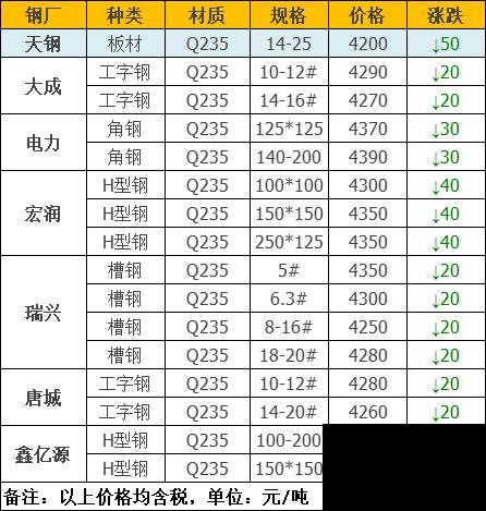 今日钢厂指导价格涨跌稳均现,华北地区型材普降,华东地区普涨,但整体受到期货跌势拖累,市场情绪和需求普遍转为观望,成交乏力,低位资源有所增多。商家出货吃力,盘中承压不断低靠,华北、东北市场承压松动,钢厂接单情况趋于谨慎,成本底部支撑弱化,悲观情绪有所蔓延,预计短期钢厂价格弱势调整。