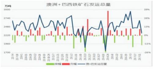 据数据统计,上周全球铁矿石发运量环比骤降超1成至2832.9万吨,澳洲、巴西铁矿石发运总量下降14.44%至2280.7万吨,刷新三个半月低位,巴西发货量处于季节性回落趋势中,本期下滑至3个月低位,而澳洲和非主流本期发运下滑幅度较小,到港量因台风卡努影响也出现显著下滑,铁矿石供应支撑增强,利多近月。