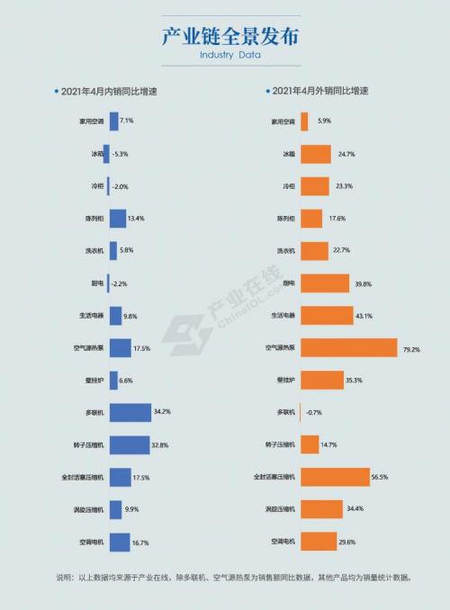 6月8日,产业在线发布冷暖产业链17个核心产品4月份的详细月评。从数据来看,产业链整体表现相对较好,绝大部分产品依然保持了增长态势。