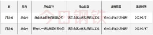 据全国排污许可证管理信息平台消息显示,2023年以来,唐山已经有两家钢企的排污许可证注销,具体情况见下表: 唐山建龙 按照河北省、唐山市相关政策要求,唐山建龙按照关停方案有序完成了冶炼等相关工序的关停工作。2020年10月31日23时16分,该公司3#高炉停产;11月14日23时02分,1#高炉停产;11月15日凌晨3时整,1#转炉停产。至此,唐山建龙冶炼工序顺利关停。 迁安轧一 迁安轧一钢铁于2020年11月16日被迁安市九江线材有限责任公司收购,成为其下辖的全资子公司。目前迁安轧一钢铁全厂停产。 排污许可 据了解,排污许可,属于一般许可。凡是依照法律规定实行排污许可管理的企业,都应当申请取得排污许可证或者进行排污登记。没有取得排污许可证的,不得排放污染物。排污许可证作为企业生产运营期排污行为的唯一行政许可,是生态环境部门对企业进行生态环境监管的主要依据。排污许可证,规定了企业污染物排放种类、浓度、排放量、排放去向等许可事项,明确了企业排污行业依法应当遵守的环境管理要求和承担的法律责任义务。 排污许可证注销办理条件? 排污单位有下列情形之一的,原核发排污许可证的环境保护主管部门应当依法注销排污许可证: 1、排污者终止生产经营的; 2、排污许可证有效期届满,未申请或未获准延续的; 3、排污许可证被依法撤销、撤回或者吊销的; 4、法律、法规、规章规定应当注销排污许可证的其他情形。 不管是注销还是办理排污许可证,都要严格按照法律规定做好排污许可的管理工作。在中国钢铁行业的发展过程中,会有钢企新申请了排污许可证,也会有钢企因为停止生产运营或其他原因注销了排污许可证。可以这样说,排污许可证伴随了企业生产的全过程。 生产管理是企业组织的核心,而制造业中的生产管理也与企业的环保行为息息相关。排污许可证规范了企业的排污行为,对于制造业中的生产管理也有很大的影响。企业如果要在制造业中长期发展,就必须从生产过程中严格执行排污许可证要求,加强环境治理和保护,促进节能减排和清洁生产,以达到可持续经营的目的。 来源:今日钢铁。如有侵权,请联系删除。