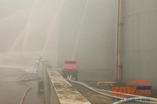 处置过程中,由于危险品持续、大量外泄,化工装置受高温炙烤,现场发生二次爆炸。巨大的蘑菇云腾空而起,强烈的冲击波席卷四方,整个厂区瞬间化为火海,同时,爆炸产生的碎片击中邻近的固定顶油罐,造成罐体破裂并引发火灾,大面积流淌火向周边装置蔓延,火势进入猛烈燃烧状态,多个区域发生险情。此时,千度耐高温消防机器人果断出击,替代消防员深入火场高温核心区域,近距离精准打击火源,对围堰内流淌火进行炮火覆盖,在围堰内罐底部形成了约五分之一高度的防护泡沫层,有效阻止了火势的进一步蔓延。随后,千度耐高温消防机器人与救援人员共同对火罐形成包围态势,并喷射巨龙般的水柱强力控火降温,将火势成功控制。