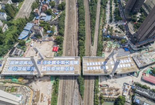 当日,由武汉武铁工程项目管理公司代建、中铁大桥院设计、中铁大桥局承担施工的建安街上跨铁路桥东主塔墩梁体转体到位。该桥为钢箱梁斜拉桥,采用高低塔钢箱梁斜拉桥上跨铁路布置形式,全长519.3米,其中主桥全长245米,桥面宽35.2米。