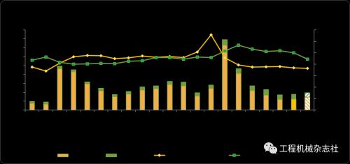 值得注意的是,2021年9月挖掘机出口市场销量增速环比大幅度下降(2021年8月出口市场增速为100%),这主要是因为出口市场去年同期基数环比大幅度提升。