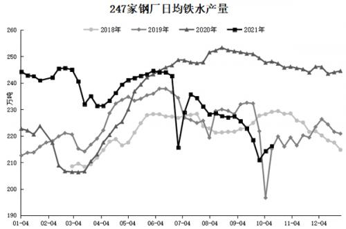 需求方面,钢铁行业仍在执行粗钢产量压减政策,叠加能耗双控政策的影响,钢厂高炉开工率日渐下滑,不断压低对原材料的需求。但在多地实施限产、限电的过程中,部分地区出现了粗暴式的拉闸停电。因此,国务院常务会议指出,各地要严格落实属地管理责任,做好有序用电管理,纠正“一刀切”停产限产或“运动式”减碳的行为,使得部分地区限产、限电稍有放松,钢厂高炉得以复产。不过,大部分都是不饱和生产,且有不少企业表示,短期虽然能恢复生产,但后期仍将配合地方政策进行限产。数据显示,上周247家钢厂高炉产能利用率为80.66%,环比回升0.72个百分点,同比下降12.25个百分点;日均铁水产量回升至216万吨左右,同比减少32万吨,目前焦炭需求仍处于偏低水平。