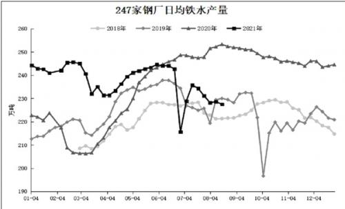 需求端,在粗钢产量压减的政策压力下,各地钢厂7月份陆续执行今年粗钢产量同比不增或减少的措施,致使粗钢、生铁产量出现明显下降。国家统计局数据显示,7月份,我国粗钢产量为8679万吨,同比减少8.4%;生铁产量为7285万吨,同比减少8.9%;1月~7月份,粗钢累计产量为64933万吨,同比增长8.0%;生铁累计产量为53350万吨,同比增长2.3%。粗钢、铁水产量的下降也表明焦炭需求压力在逐步增加。数据显示,上周,247家钢厂日均铁水产量为227.52万吨,较去年同期减少25.78万吨,同时较上半年日均铁水均值低13万吨左右。目前,需求的下降在一定程度上缓解了焦炭供应偏紧的矛盾。