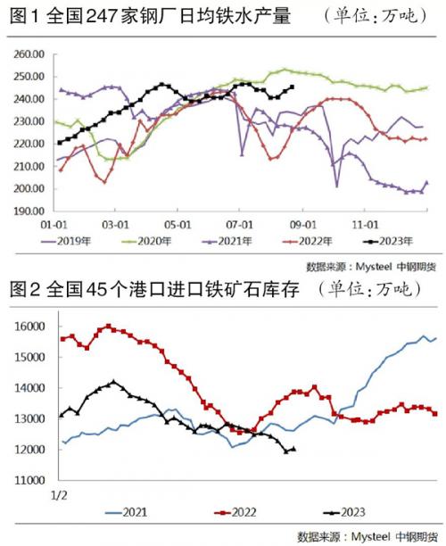 供应方面,主流矿山铁矿石发运总量回升至中位偏高水平,非主流矿的铁矿石发运量保持高位,国产矿供应量保持去年同期高位,到港量在创出历史新高之后出现回落,短期供应端支撑作用减弱。中期来看,后期属于巴西淡水河谷季节性高发期,叠加澳大利亚必和必拓和FMG矿山财年目标同比均有所提高,第三、四季度预计四大矿山铁矿石发运量较第一、二季度增加3600万吨,其中淡水河谷增量约为1400万吨;发往中国的铁矿石量较第一、二季度增加2700万吨,其中淡水河谷增量为900万吨,澳大利亚力拓、必和必拓和FMG矿山增量分别为400万吨、600万吨、800万吨。