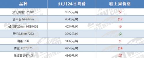 11月20日-11月24日,持稳偏强(中钢网大数据库)