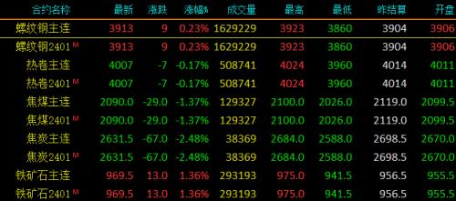 30日黑色系螺纹钢主力涨9,收报3913,涨幅0.23%;热卷主力跌7,收报4007,跌幅0.17%;焦煤主力跌29,收报2090,跌幅1.37%;焦炭主力跌67,收报2631.5,跌幅2.48%;铁矿石涨13,收报969.5,涨幅1.36%。