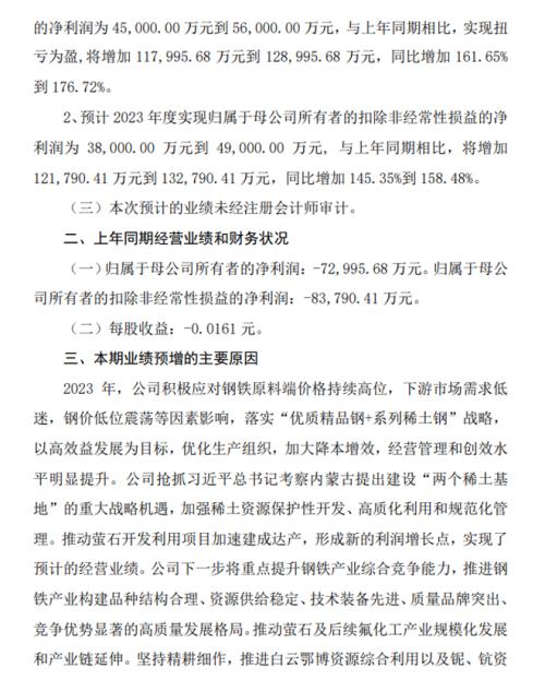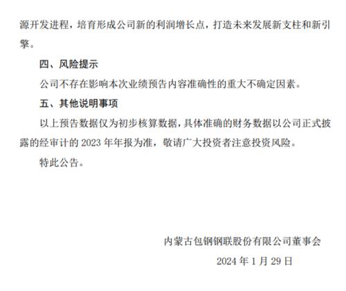 包钢股份: 包钢股份2023年度业绩预告