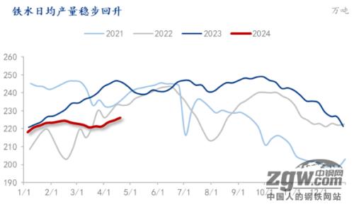 回顾2024年1-4月行情,可用“先抑后扬”来概括。1-3月,在国内化债以及海外持续维持高利率的背景下,黑色系价格萎靡不振,走出了连续震荡下跌的运行态势。普钢价格价格指数由年初4260.49元/吨下跌至3841.97元/吨。本轮下跌的主要原因是下游需求差。根据百年建筑调研显示,2月28-3月5日,全国10094个工地的春节后复工率以及农务上工率均同比下降,水泥价格同比下降20%。进入四月,需求改善虽迟但至,铁水产量稳步回升,钢材去库速率尚可,且政府有积极推动专项债项目落地的意愿,调整较为充分的钢价有望在短期强势突破。