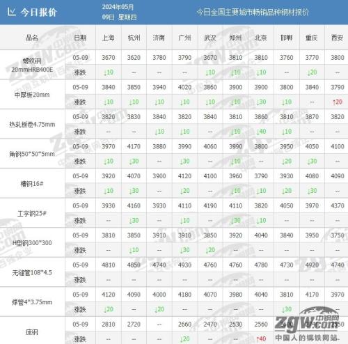 5月9日,据中钢网资讯研究院数据显示(微信公众号:中钢网),今日共20家钢厂调价,其中: