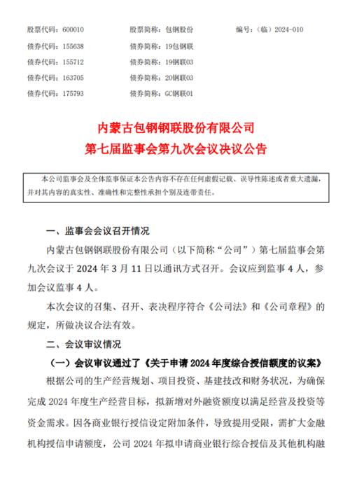 包钢股份: 包钢股份第七届监事会第九次会议决议公告