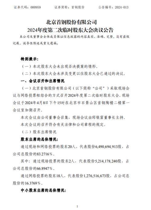 首钢股份: 北京首钢股份有限公司2024年度第二次临时股东大会决议公告