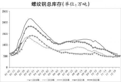 今年2月份正值北京冬奥会期间,供应端偏紧利多钢材价格;2021年底至今,市场对下游“小阳春”抱有乐观预期,推动钢材价格整理中偏强运行,而真实需求有望在3月份证伪。根据历史数据统计,螺纹钢库存高点或出现在2月下旬,今年的库存水平较低,以累库数据推算,全年库存峰值或不足1400万吨,将大幅低于过去两年,对螺纹钢价格构成支撑。综合来看,钢材市场偏暖运行,监管层针对大宗商品恶意炒作的管理依旧严格,或抑制黑色系钢材价格上升空间。